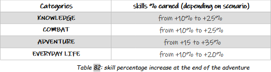 Each character earns percentages in the 4 skill categories. These percentages are specified in the scenario.