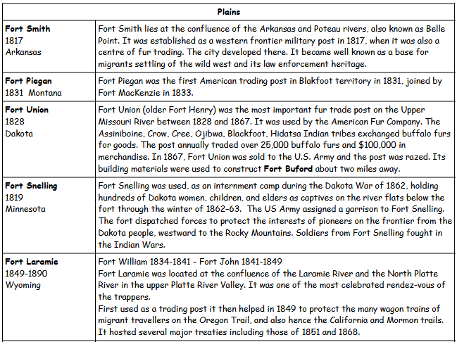 The first ones were built along the migration routes, the others near the supply routes or not far from the hostile Indians. They were rudimentary and without comfort.