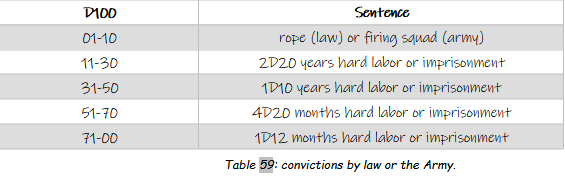 When the GM has made all the adjustments (for the law or for the army), he rolls a 1D100 to define the character's sentence: