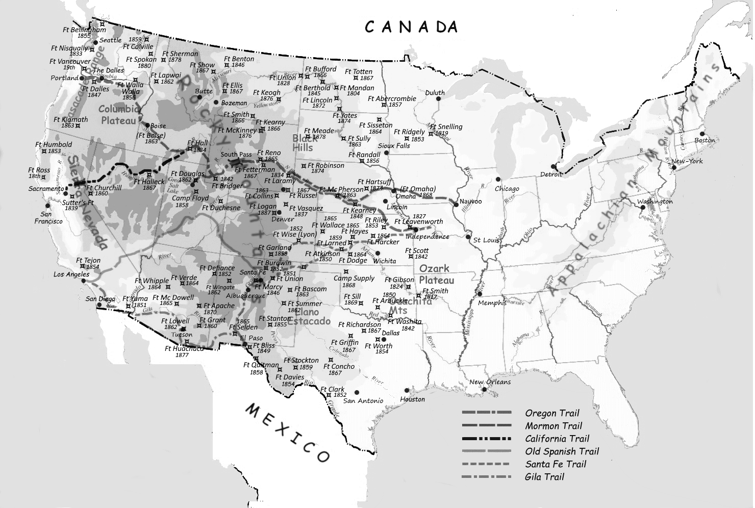 The first ones were built along the migration routes, the others near the supply routes or not far from the hostile Indians. They were rudimentary and without comfort.